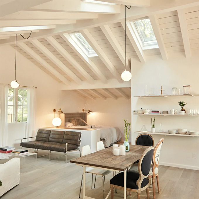 With skylights, treetop views, and little antique touches throughout, this spacious loft is perfect for two looks to explore Sonoma.