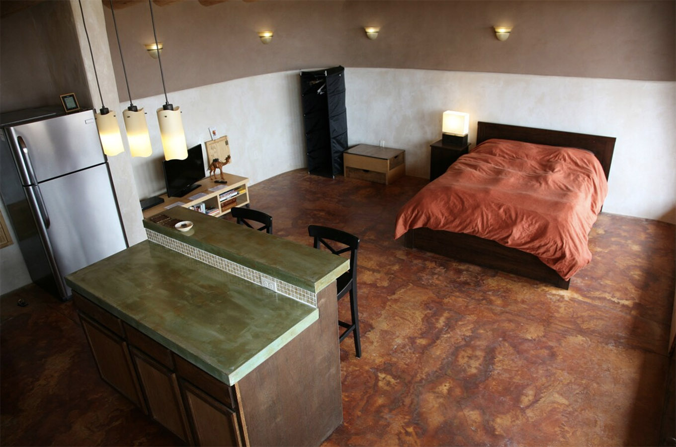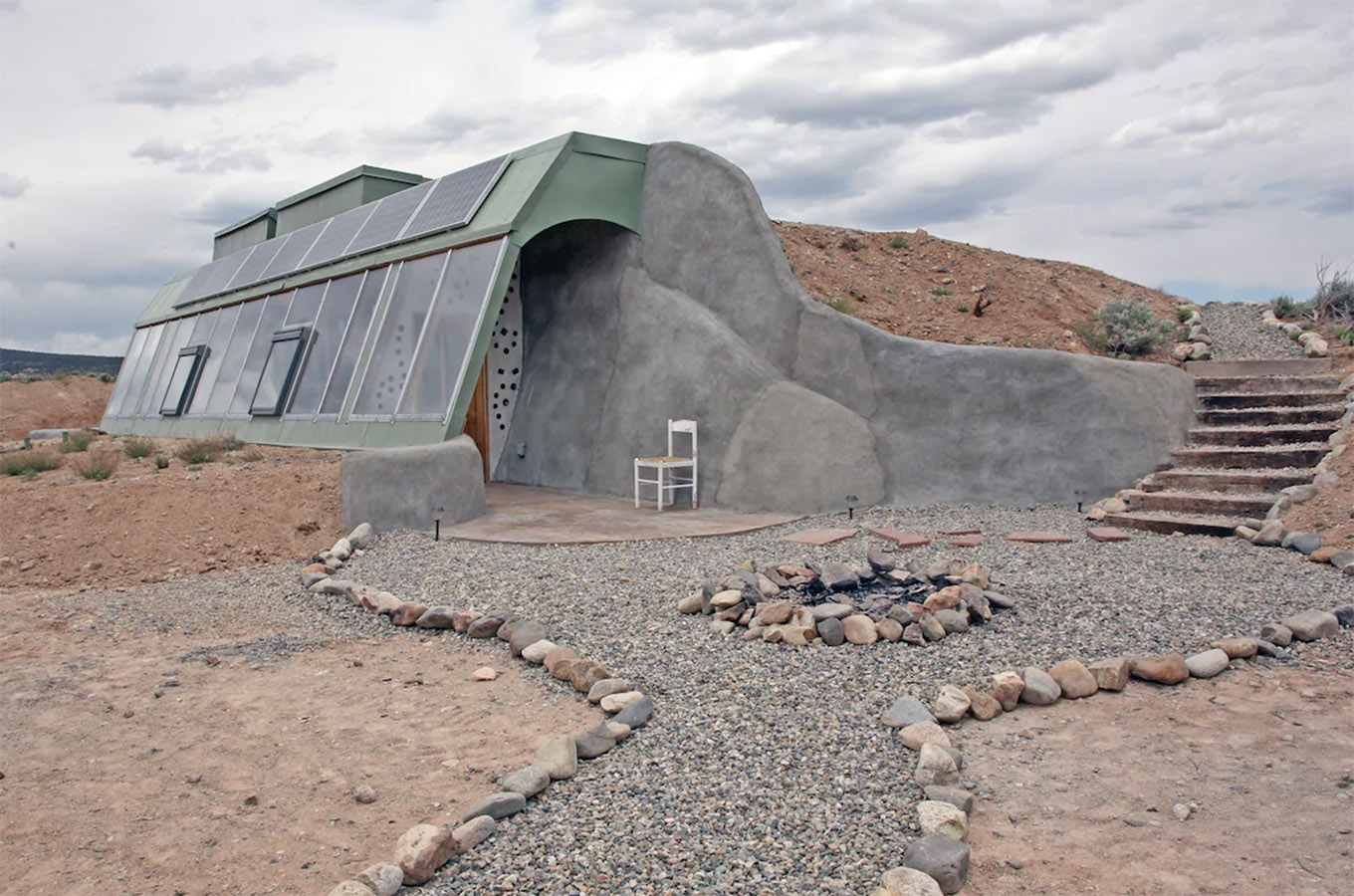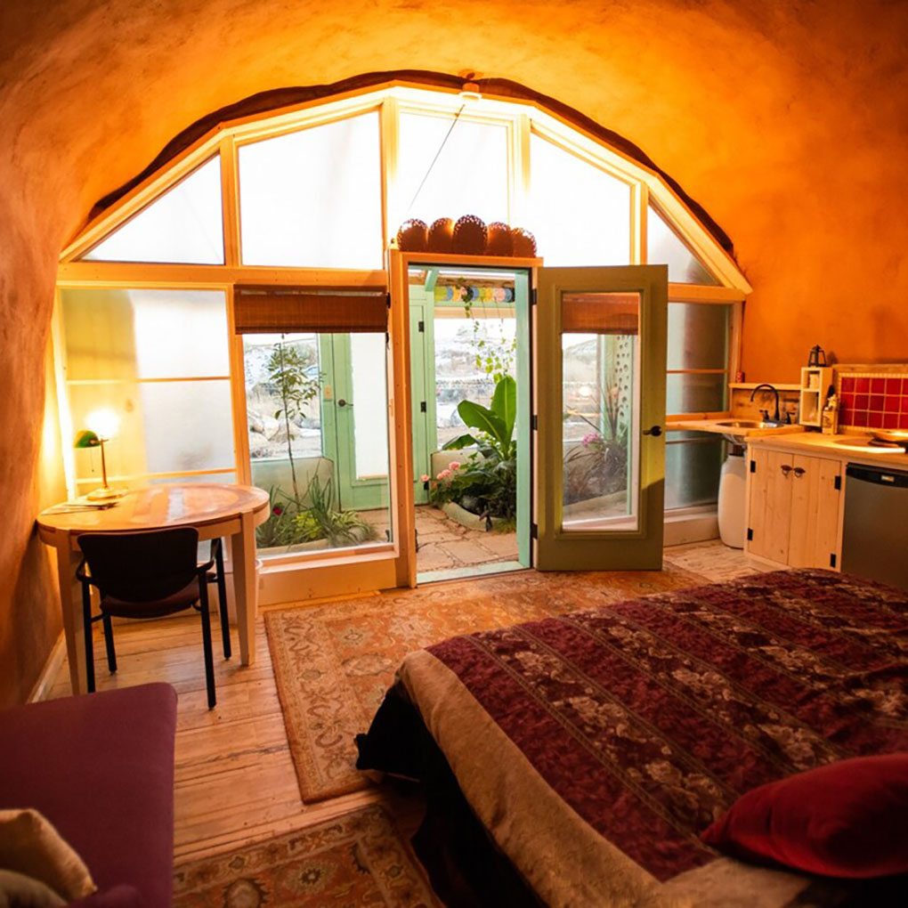 Fitted with all the modern amenities you could want, while going off the grid, this brand new studio Earthship. The Earthship catches its own rainwater, generates its own electricity, and stays at a steady (and very pleasant) 72 degrees.