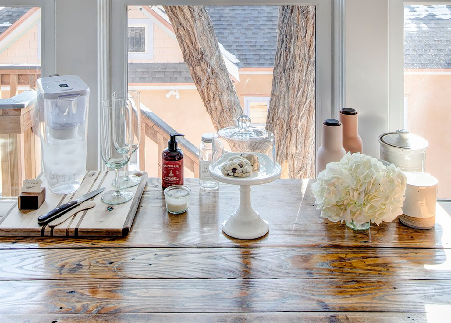 The Writer’s Cabin sits on 40 acres of beautiful ponds, aspens, cottonwood trees, berry orchards, and more. It’s the perfect space to write, paint, kick back, take walks, or immerse yourself in nature. There’s also a small farm cafe to get yummy nibbles.