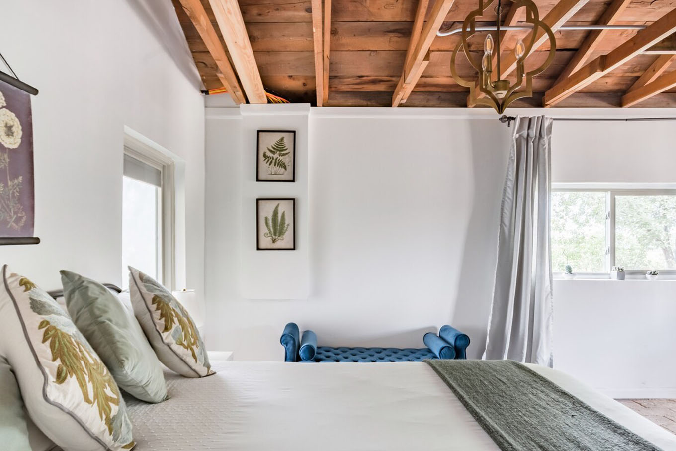 Hang out in the hammock and soak up all the boho vibes in this light-filled space. The adobe was the dance studio of renowned flamenco dancer, Maria Benitez. Now, it’s been transformed into a romantic getaway in a private park-like setting.