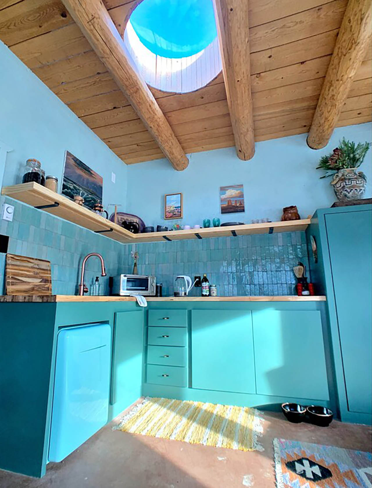 This desert-inspired cottage mixes vintage goodies with high-end touches and is right near the magical Sangre de Cristo Mountains. The space used to be a pottery studio and has since been transformed into a place to relax and rejuvenate.