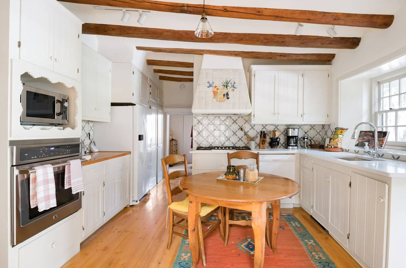Have you wanted to stay in a cabin on a farm? Well then, this is the kind of place Airbnb is made for! The home dates back to the 1820s and has been upgraded with such charm. The wood beam vaulted ceilings are a dream!