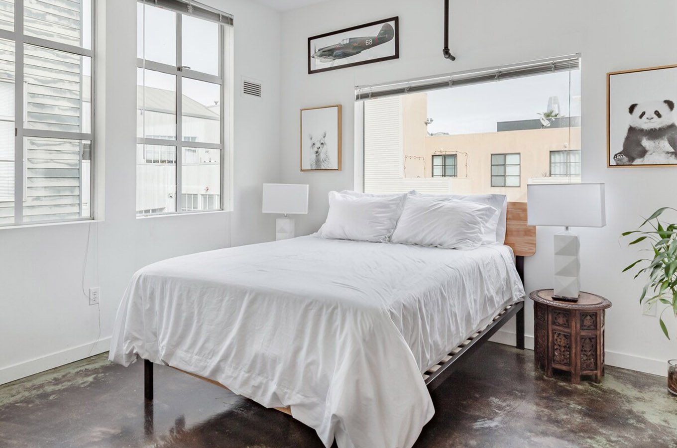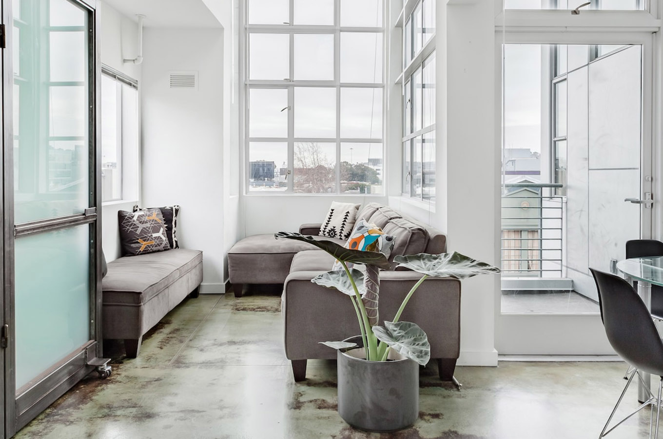 The way those windows allow all the light in is such a goreous feature in this San Francisco loft. The vibrant and open living room is the perfect place to lounge after a long day of exploring the city.