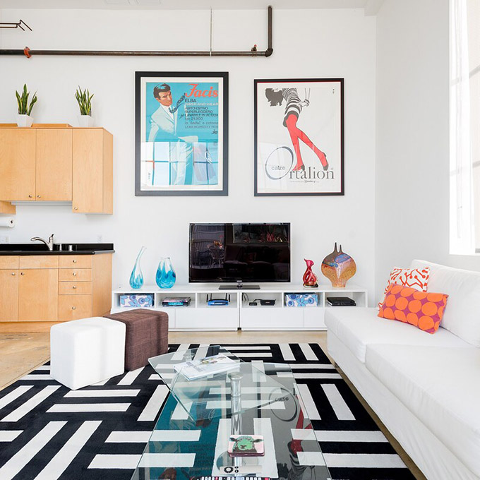 I’m a big fan of all the beautiful light that fills the loft and the modern meets industrial furnishings.