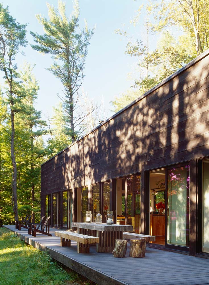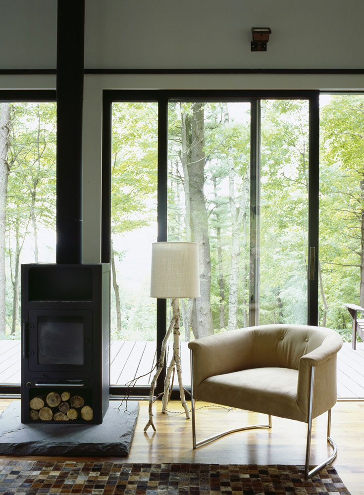 The goal of this glass cabin was to live in the woods, protected from the elements but as close to nature as possible. Mission accomplished at this perfect Hudson Valley retreat! Only windows separate you from the Catskill mountains, trees, and forest.