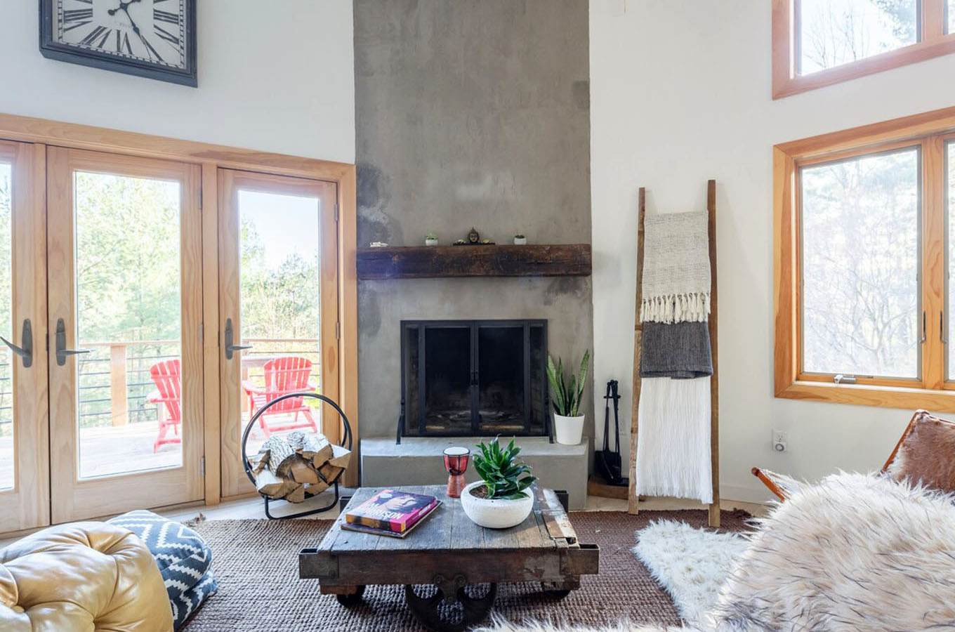 There’s also an outdoor deck with a nice view of the nearby stream!