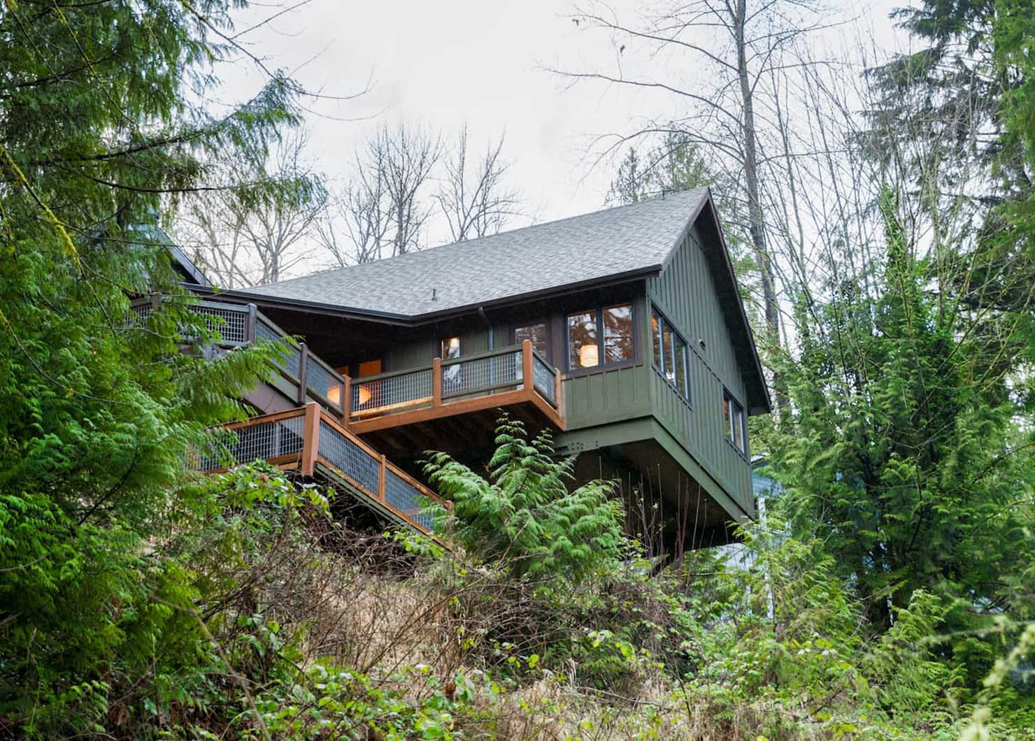 This classic yet newly renovated ’70s cabin near Mt. Baker, WA is fitted with modern amenities and sleeps up to 10 people.