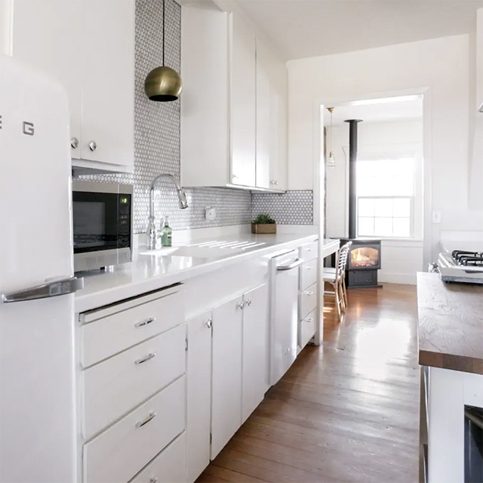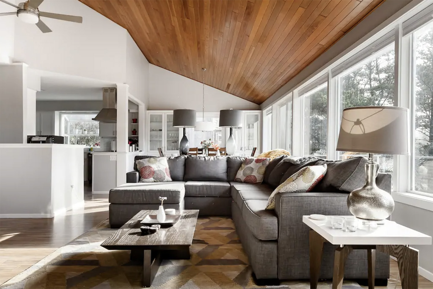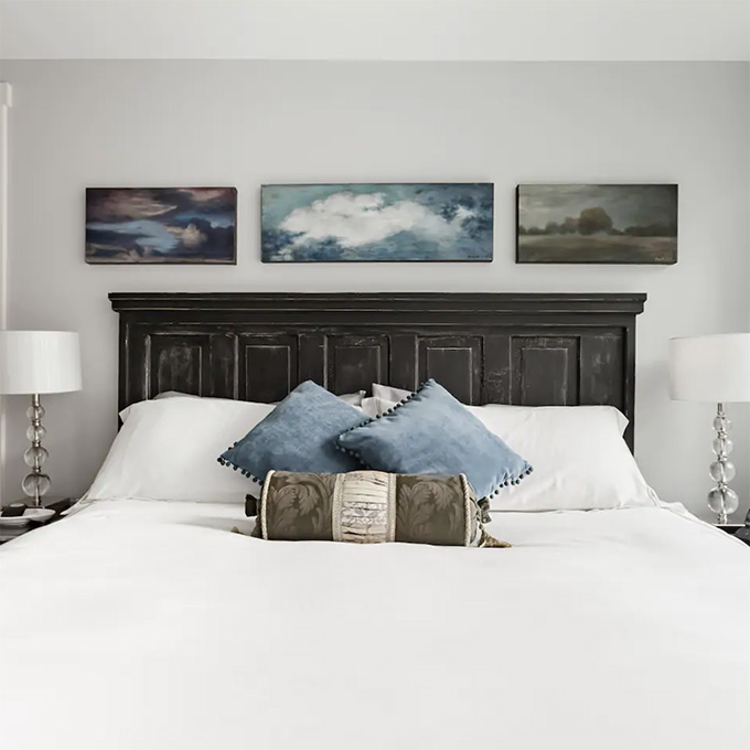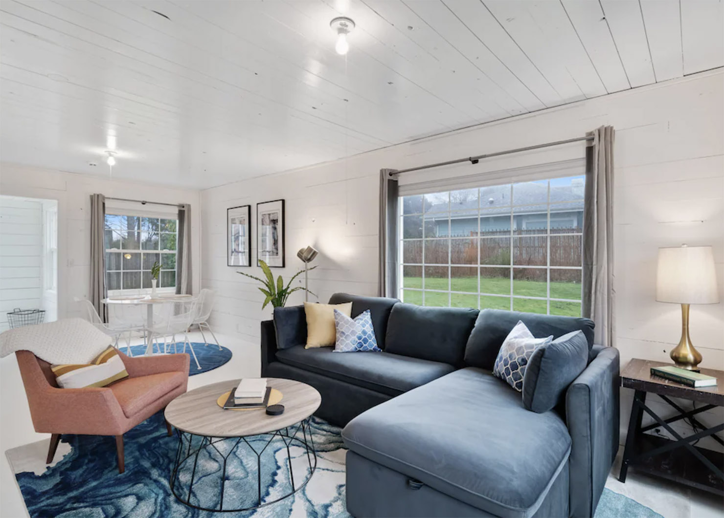 If you’re looking for a tranquil getaway in Manzanita, OR with a large group — this place can accommodate up to 10 guests! I particularly like the cozy wood-burning stove and the neutral gray aesthetic.