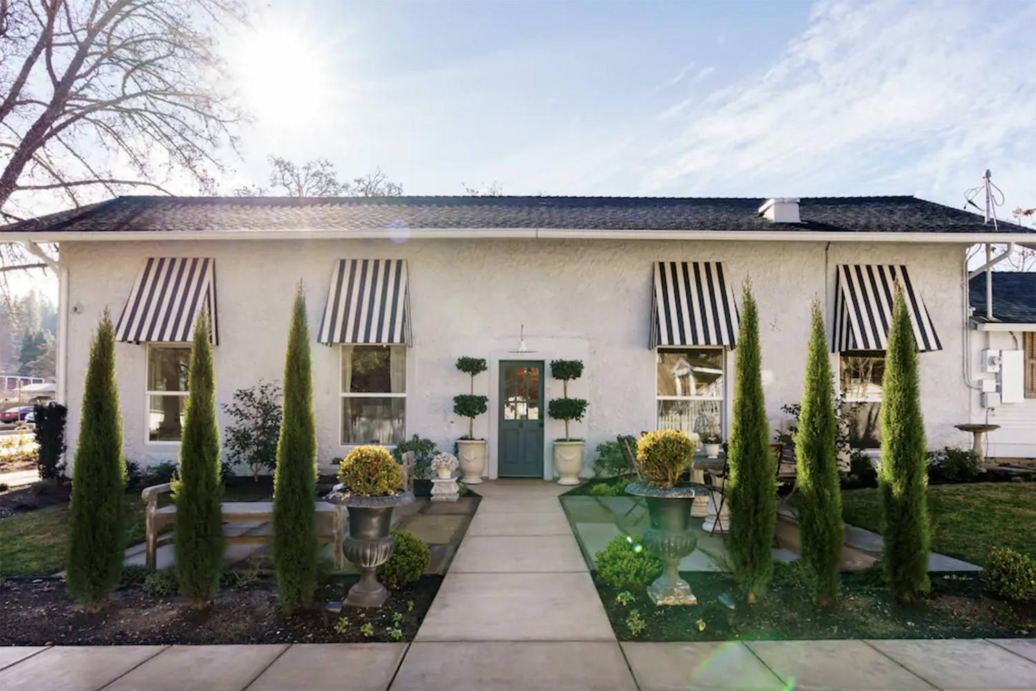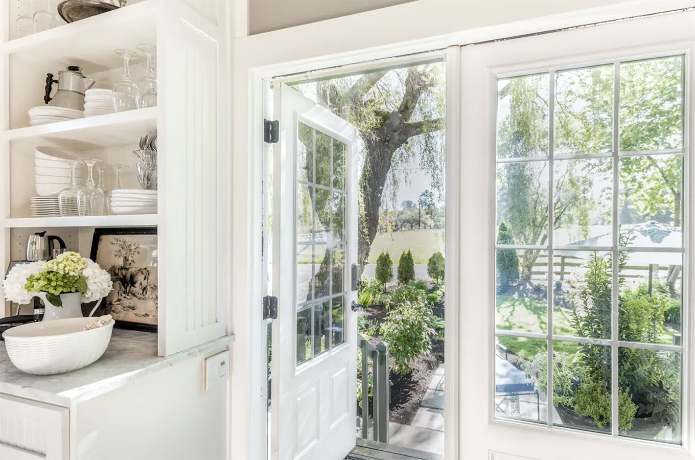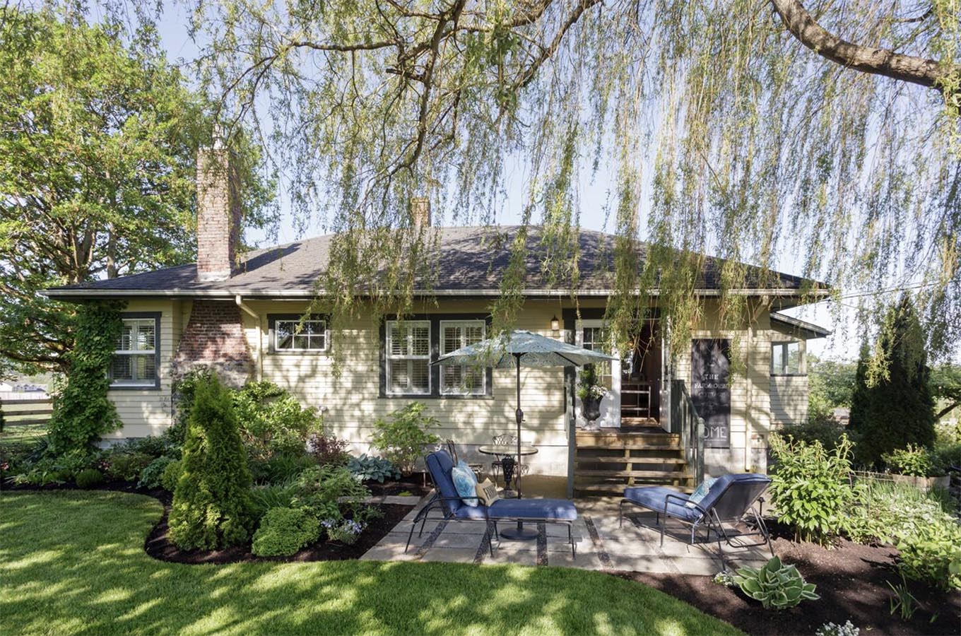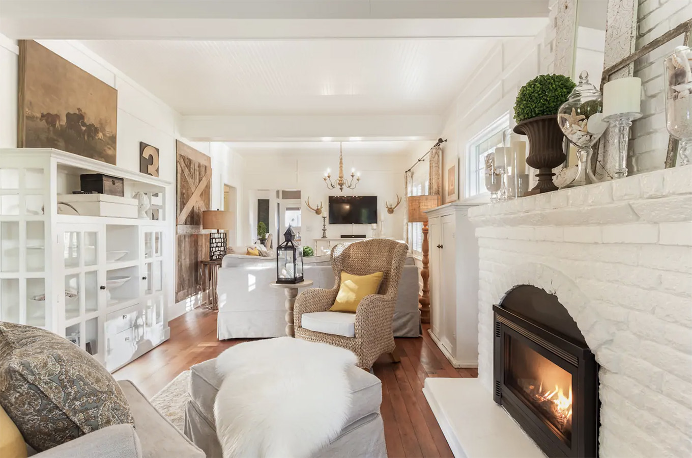 From the landscaped gardens to the farmhouse-inspired kitchen to the antique wooden furniture — this place oozes with charm!