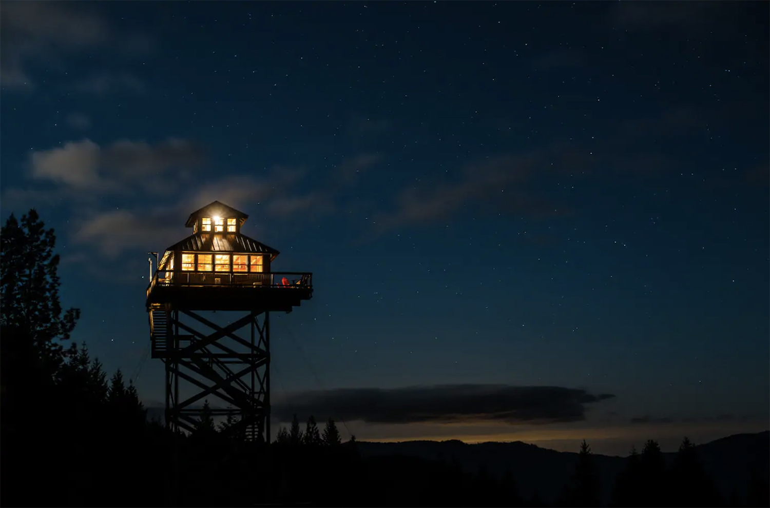 If you want peace and quiet — that’s what you’ll find here! Go off the grid atop a 40-acre meadow on 160 acres of private land. Surrounded by the lush Umpqua National Forest in Douglas Country, this vintage-inspired lookout tower is fitted with tons of modern essentials.
