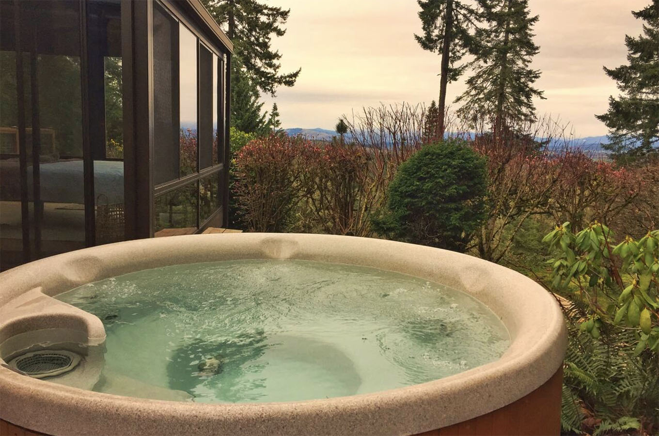 Can’t decide if you want a view or a hot tub? There’s no need to choose at this gorgeous Eugene, Oregon property! While it feels away from the hustle and bustle of the city, it’s actually only 20 minutes outside of Downtown Eugene.