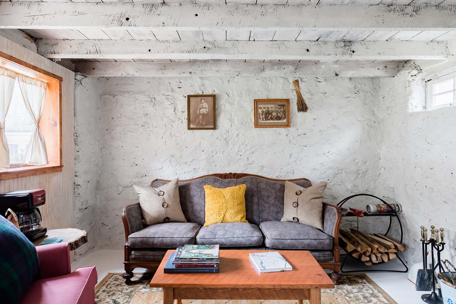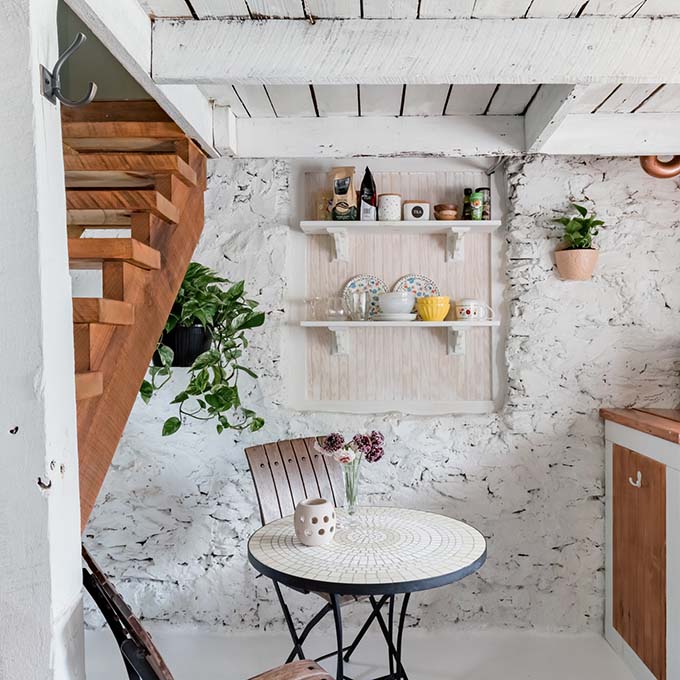 First off, to get here you walk past lines of tall trees and over a quaint wooden bridge. Honestly, this place looks like something straight out of a fairy tale! Take a step back in time with the wood-burning stove and whitewashed stone walls. Perfect for an off-grid getaway in Asheville, North Carolina.