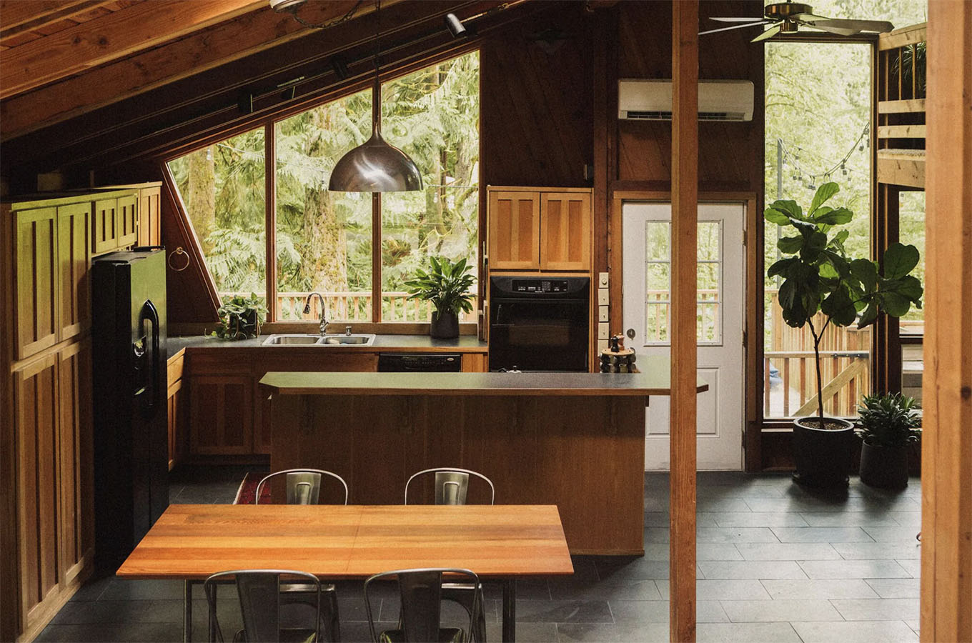 Looking for a rustic getaway? High on a granite ledge, you’ll find this cabin overlooking a gorgeous river that weaves through a lush forest in the North Cascade mountains. Have a whiskey-fueled card game by the fire or lounge in the hot tub for the ultimate A-frame experience.