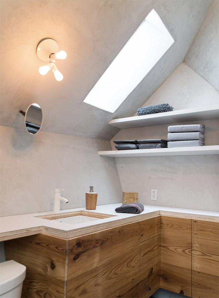 This tiny house has got such a unique style to it…I mean look at that “beehive”-inspired exterior! The interior is reminiscent of Japanese teahouses, and all the stylings are sleek and functional.