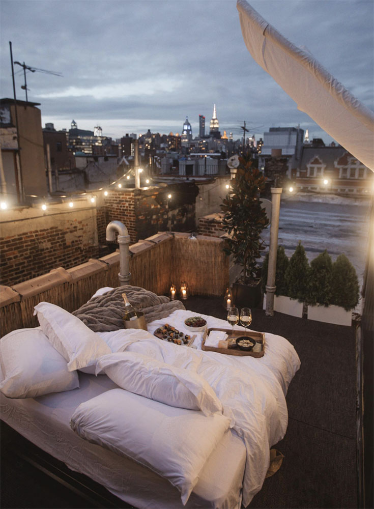 A gorgeous apartment featuring brick walls and super cool decor…plus that rooftop terrace! Take in the view of the NYC skyline and see the city at night.