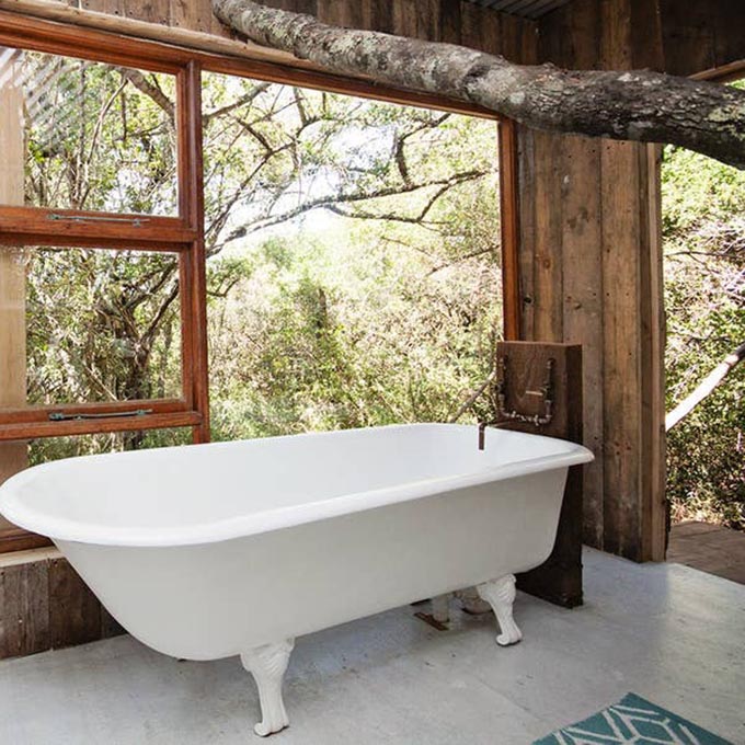 Here, you’ve got to embrace the moment as there is no electricity in the treehouses…all the better to experience the South African bush! While you might hear the occasional hippo, laughing hyena, or lion—you’ll be safe as the treehouses are strategically positioned above the ground.