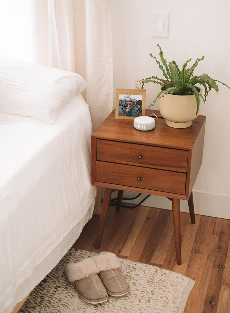 - Mid-Century Modern Charging Nightstands – Love that these have hidden plugs built-in!