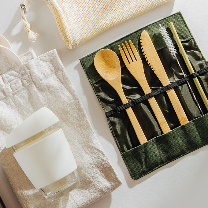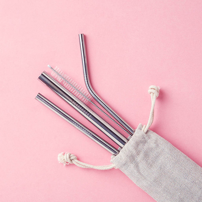 Having a set of plastic-free straws at home, and a stashed-in-your-bag straw is a super easy solution. Along with your “bag straw,” you can also have a set of on-the-go utensils, too.