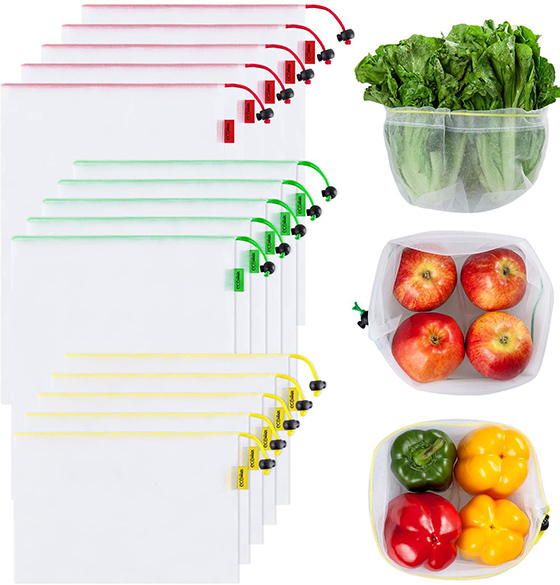 If you like to bundle up your goods at the market, these reusable mesh produce bags scan through easily and can be washed in your laundry.