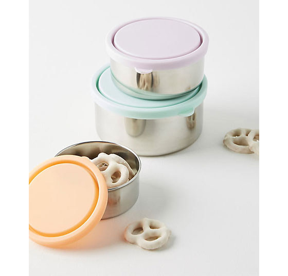 This set of three lidded storage containers are perfectly sized to fit inside a tote for on-the-go meals. Crafted from premium stainless steel with leak-resistant lids, they’re a must-have for leftovers, lunches, sauces, and more.