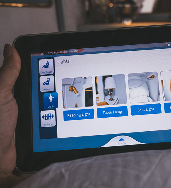 There are no overhead bins in First Class which make your suite feel super open and spacious.