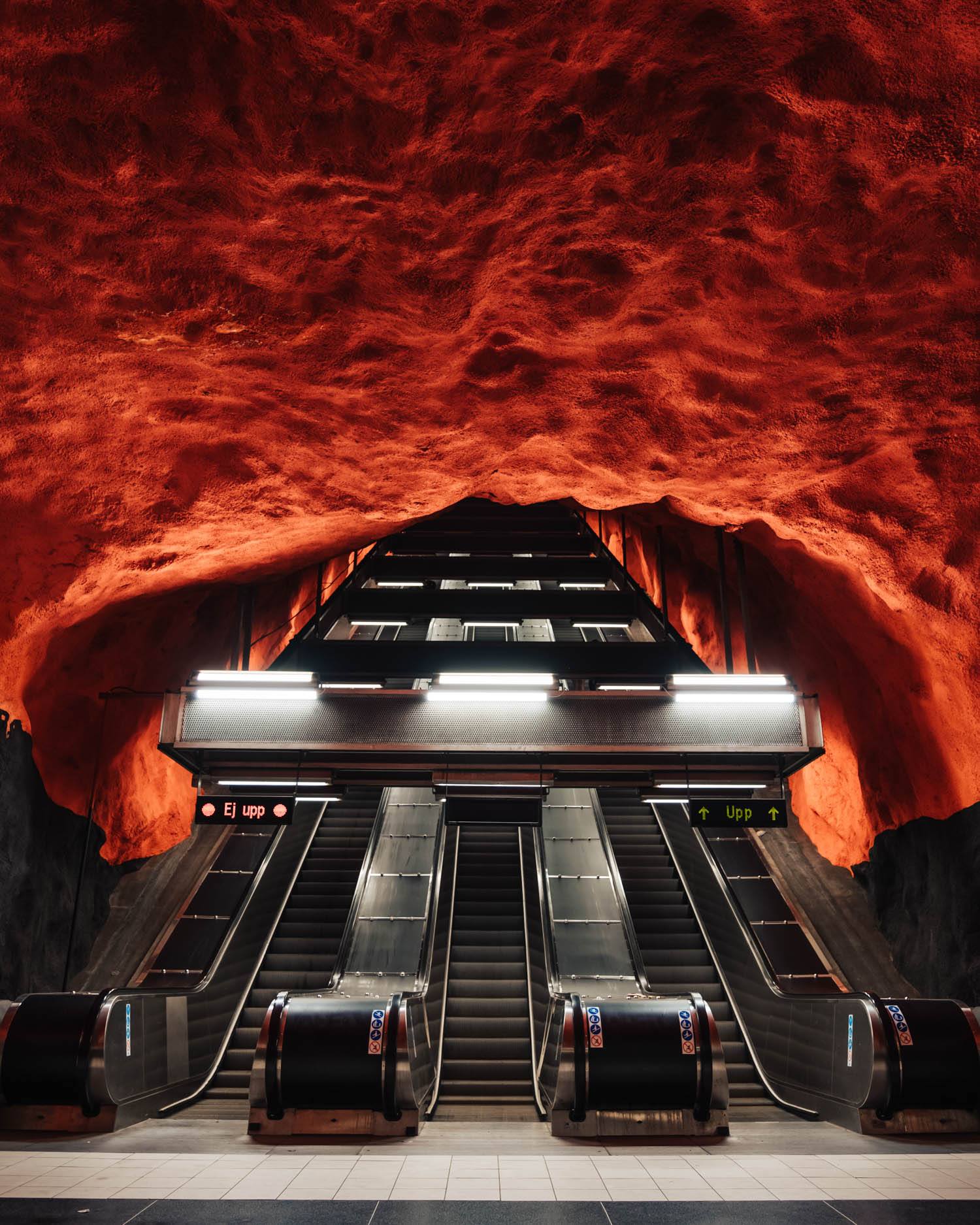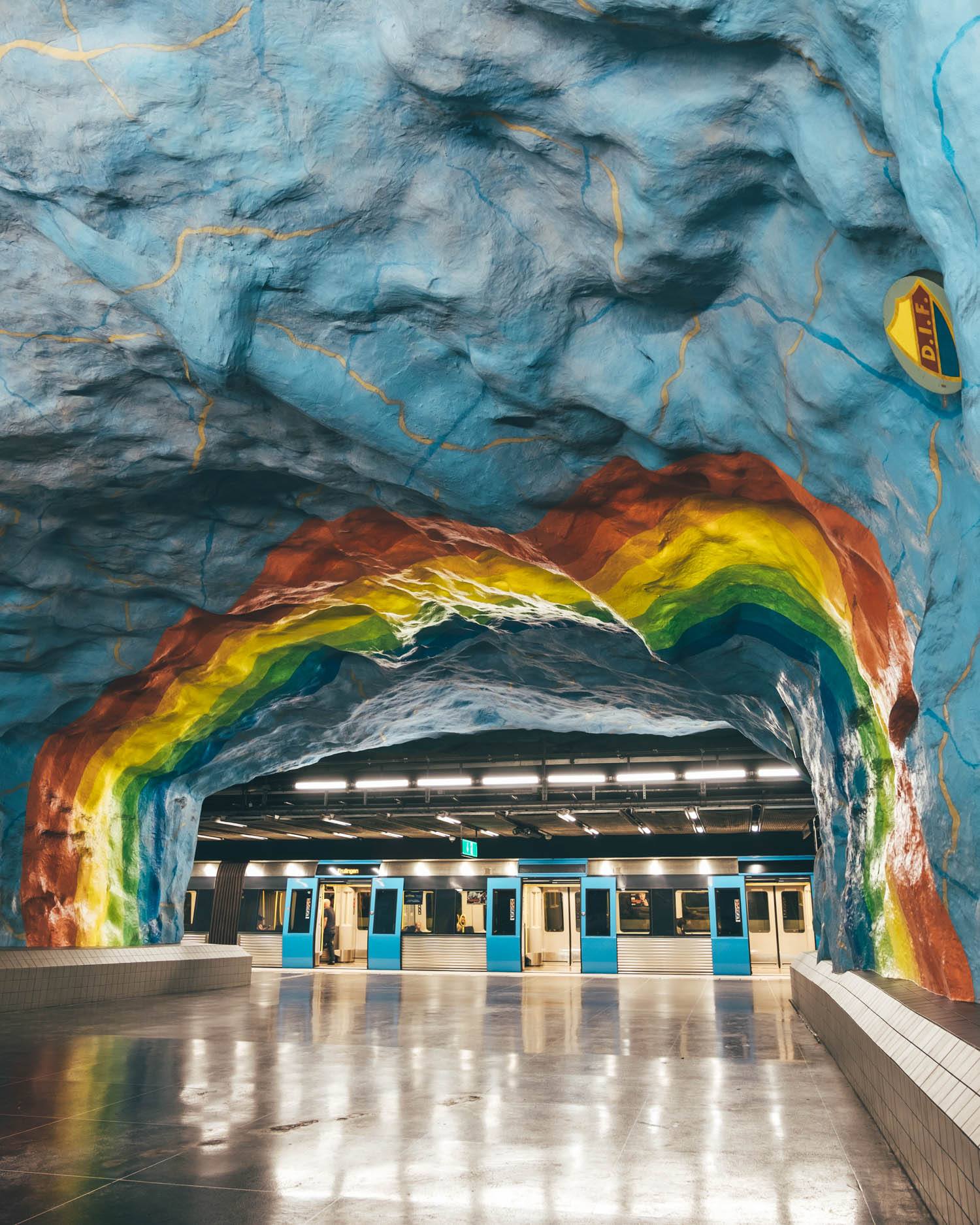 Hallonbergen: The Hallonbergen station is one of the most whimsical subways in Stockholm. Local artists Elis Eriksson and Gosta Wallmark decorated the subway with drawings from the childhood. There’s also a rainbow escalator – making it one of the most Instagrammable spots in the city!