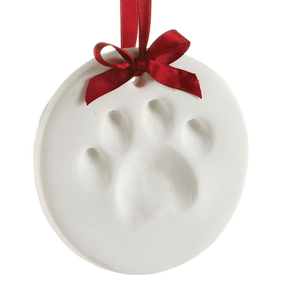 What a sweet sentiment! Capture your pet’s paw print to hang on the tree. This kit includes air-drying clay, a shaping ring, rolling pin, hole punch, and 1 red grosgrain ribbon making it super easy to do. The clay doesn’t require any mixing or baking—just knead, roll out, wet your pet’s paw, and press gently into the clay!