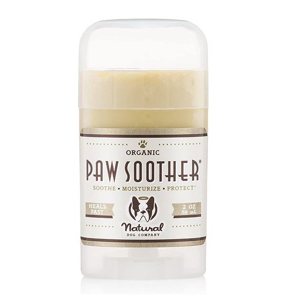 This heals dry, cracked, and irritated dog paw pads with organic, all-natural ingredients.