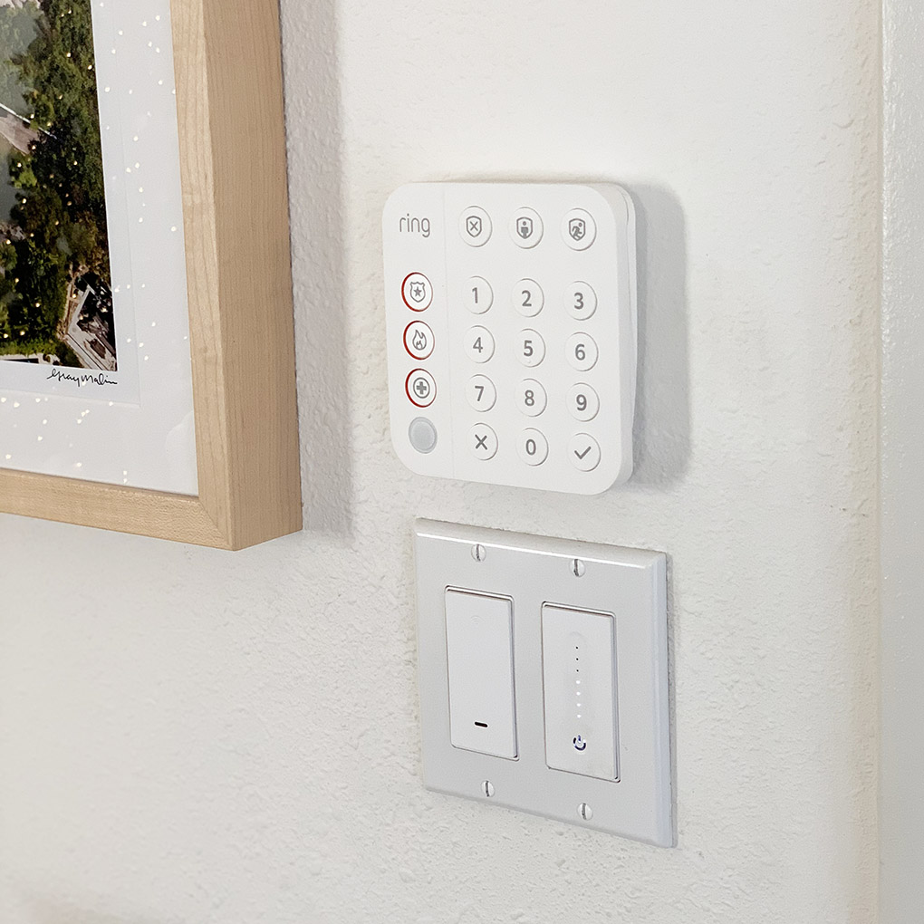 Pros: We stuck up our keypads with Command strips and they’re wireless (no unsightly cords or having to drill holes into your walls!).