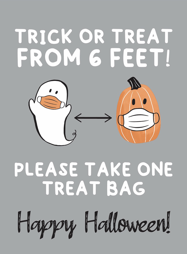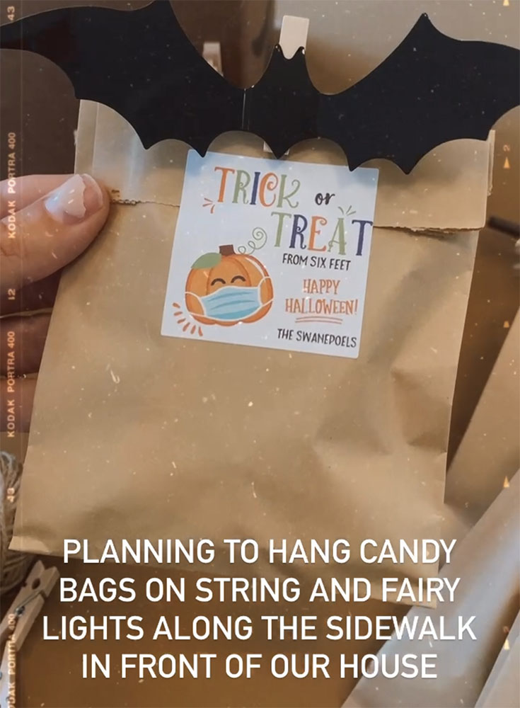 I also bought little signs to string along from Etsy that said, “Trick or treat stay 6 feet!” I attached these along the string holding the goody bags, so hopefully, it was understood to take a bag.