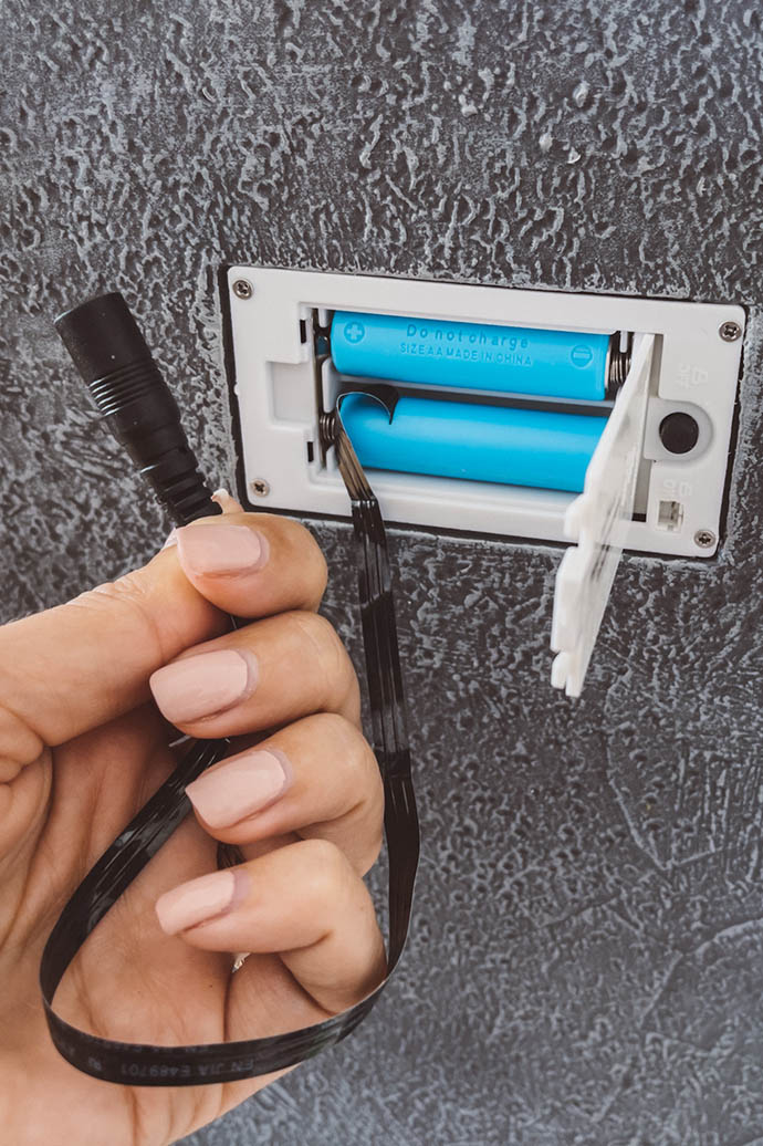 They sell single and 3-plug adapters; since we had six light-up cemetery items, we used two of the 3-plug adapters. You basically pull out the batteries and pop in a cable battery and you run it to the plug point.