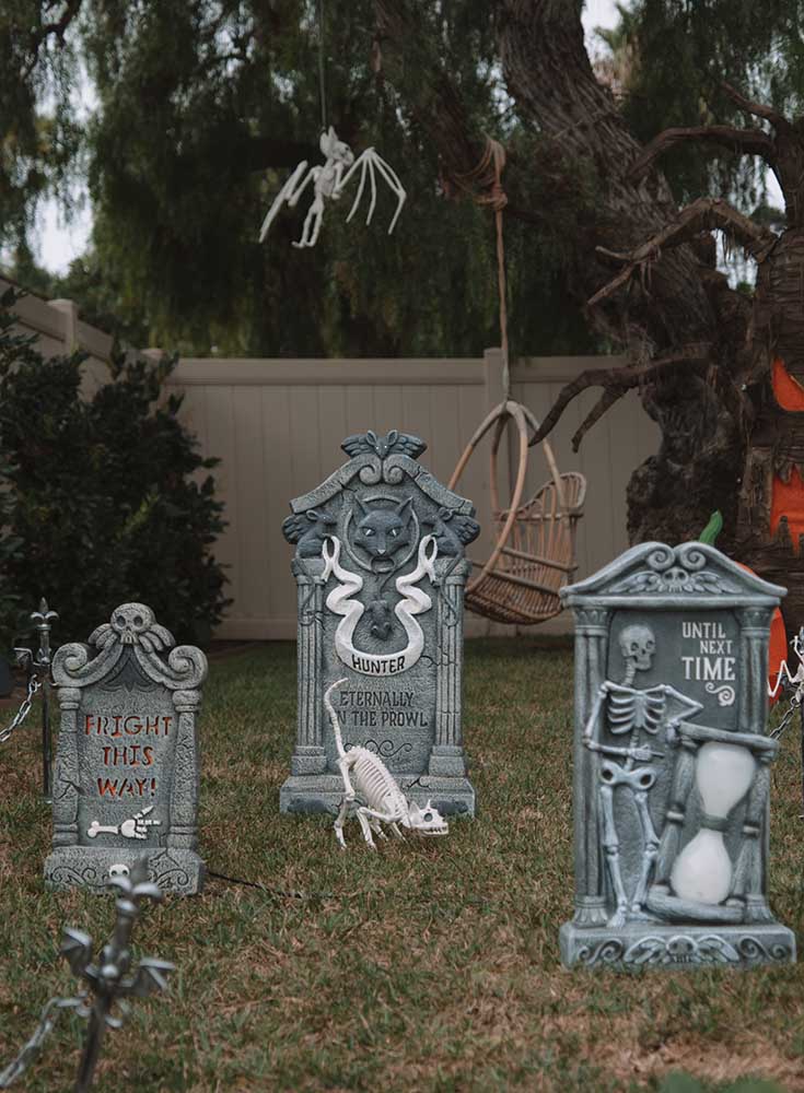 - Grave Stones: Fright This Way, Hunter Terminally on the Prowl, Until Next Time, Boo to You, Haunt Ya Later, Touch Nothing Nothing Will Touch You, Trick or Treat