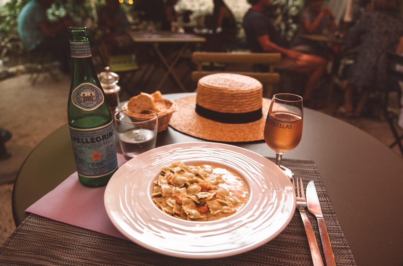 For the aperitif and when guests are nibbling on light things, you can go for a simple glass of Champagne (or something with a twist like a French 75). Though it hails from Italy, Aperol Spritz is quite popular, too!