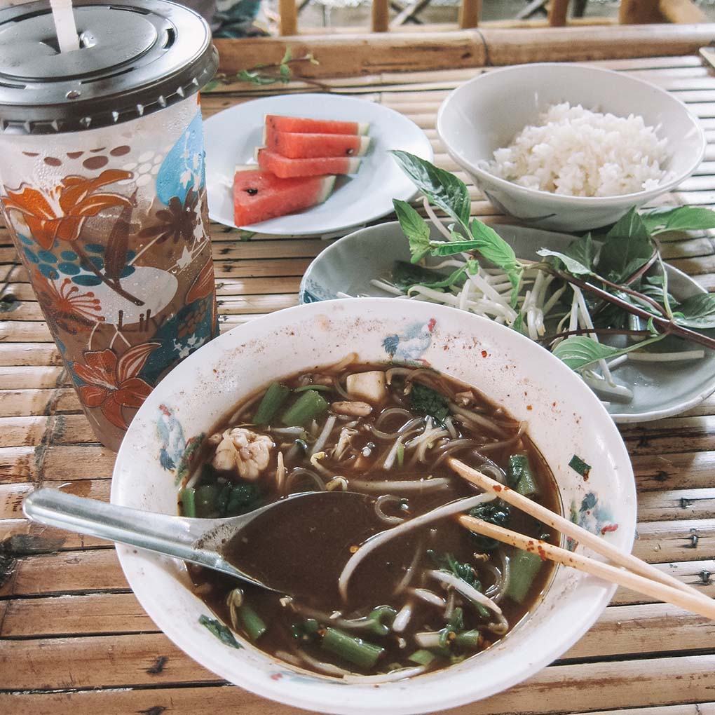 After our strenuous hike, we hit the road and stopped by a little hut packed with locals and food that smelled so good. It was typical Thai street food and we scarfed it up!
