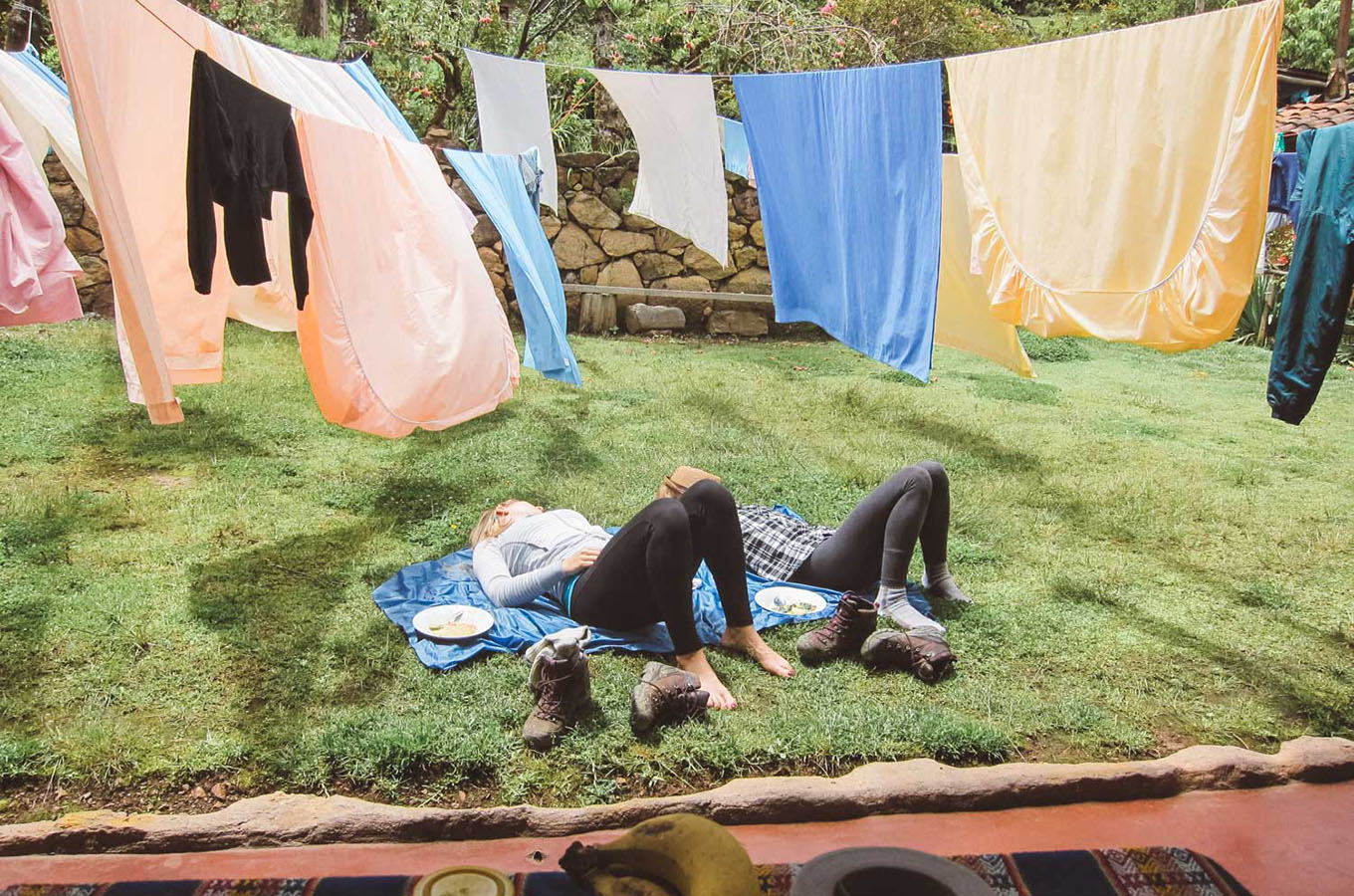We laid down in the grass at our hotel (family home) before getting our groove back and gearing up for our three-hour tour of the ruins of the last refuge of the Incas. The hike took us to three different archeological sites. At our first stop, we performed a coca leaf offering with Daniel while he played the Andean flute.