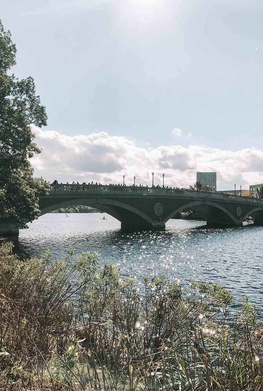 Running parallel to Charles Street is the waterfront promenade or the “Esplanade” along the Charles River. Visitors can walk along the path, cross one of the bridges to Cambridge or rent sailboats and kayaks from Community Boating.