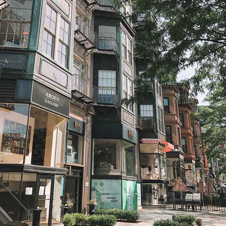 Newbury Street is Boston’s shopping mecca, with a mix of boutique stores, brand names, along with cafés and restaurants. The high-end designers are closest to Arlington Street and tend to get less formal as you walk west.