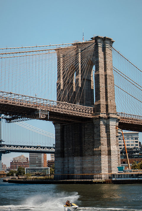 One way to get around NYC is by taking the NYC Water Ferry. This makes getting from Manhattan to Dumbo Brooklyn super fast in just 4 minutes. The views from the water taxi are also so scenic with a view of the Brooklyn Bridge.