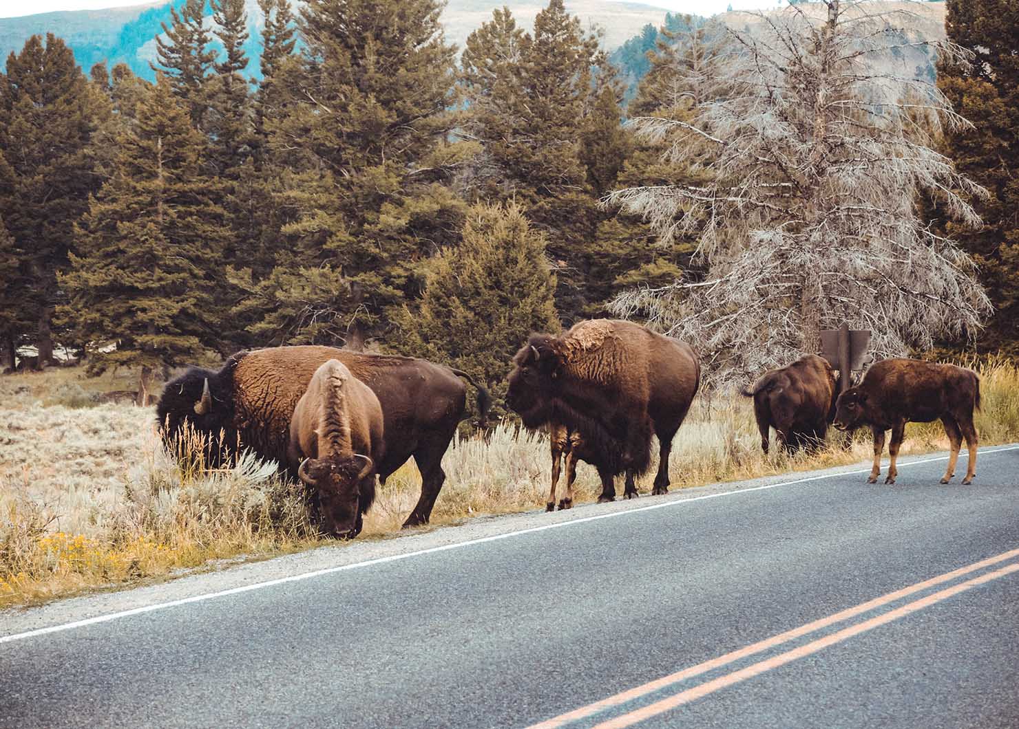 Please don’t get too close to wildlife. You’ll likely see bison and elk when you visit, and you might even see bears or wolves (less common). These animals are wild, and they will attack if they feel threatened, so admire them from a distance!