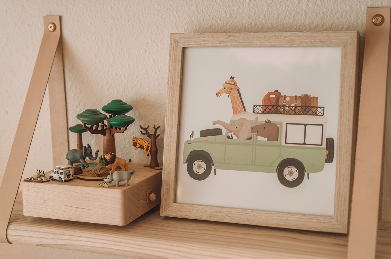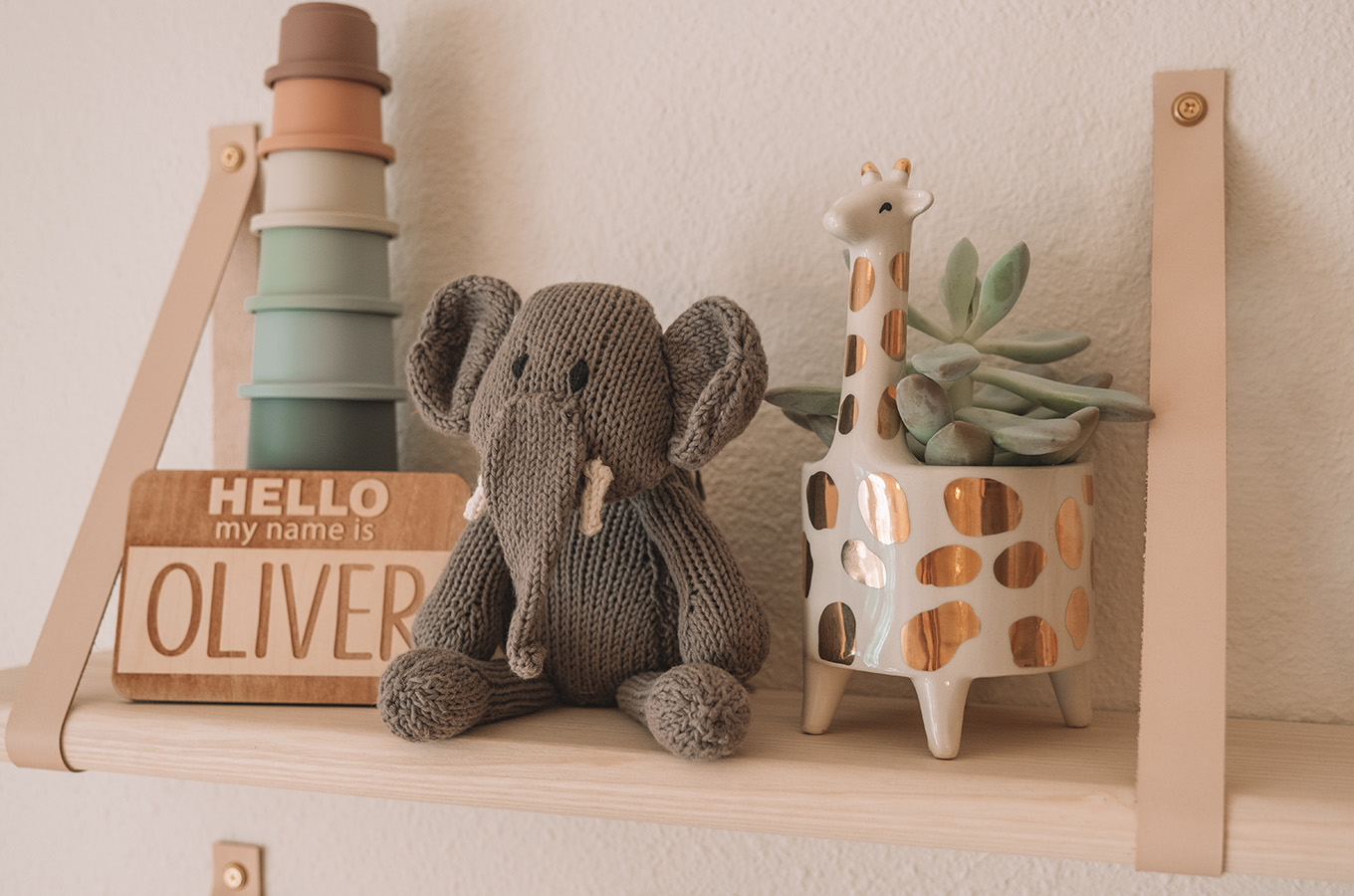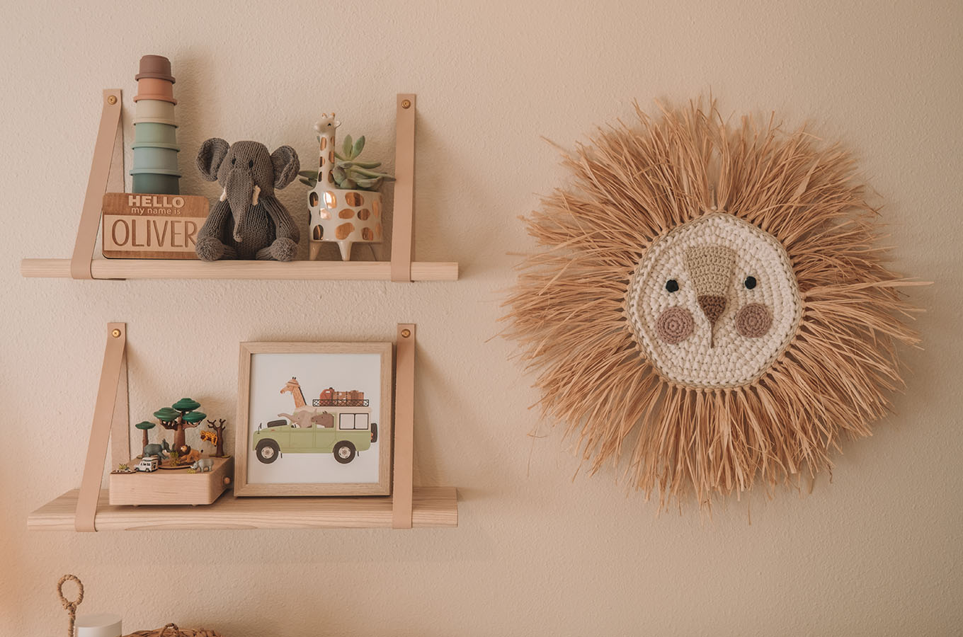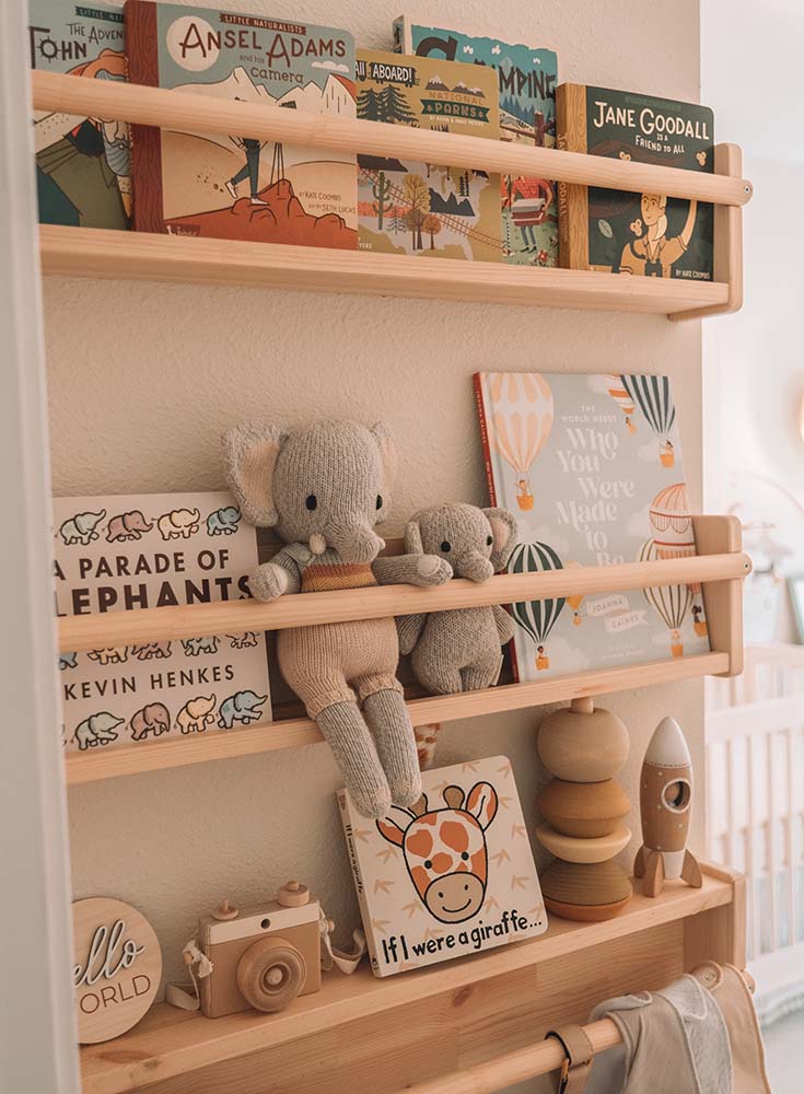The shelves in our neutral safari-themed nursery are from IKEA but have been sold out for AGES—I found them on Poshmark. However, you can find lots of other similar options on Etsy which is what we did for the bookshelves under the windows).