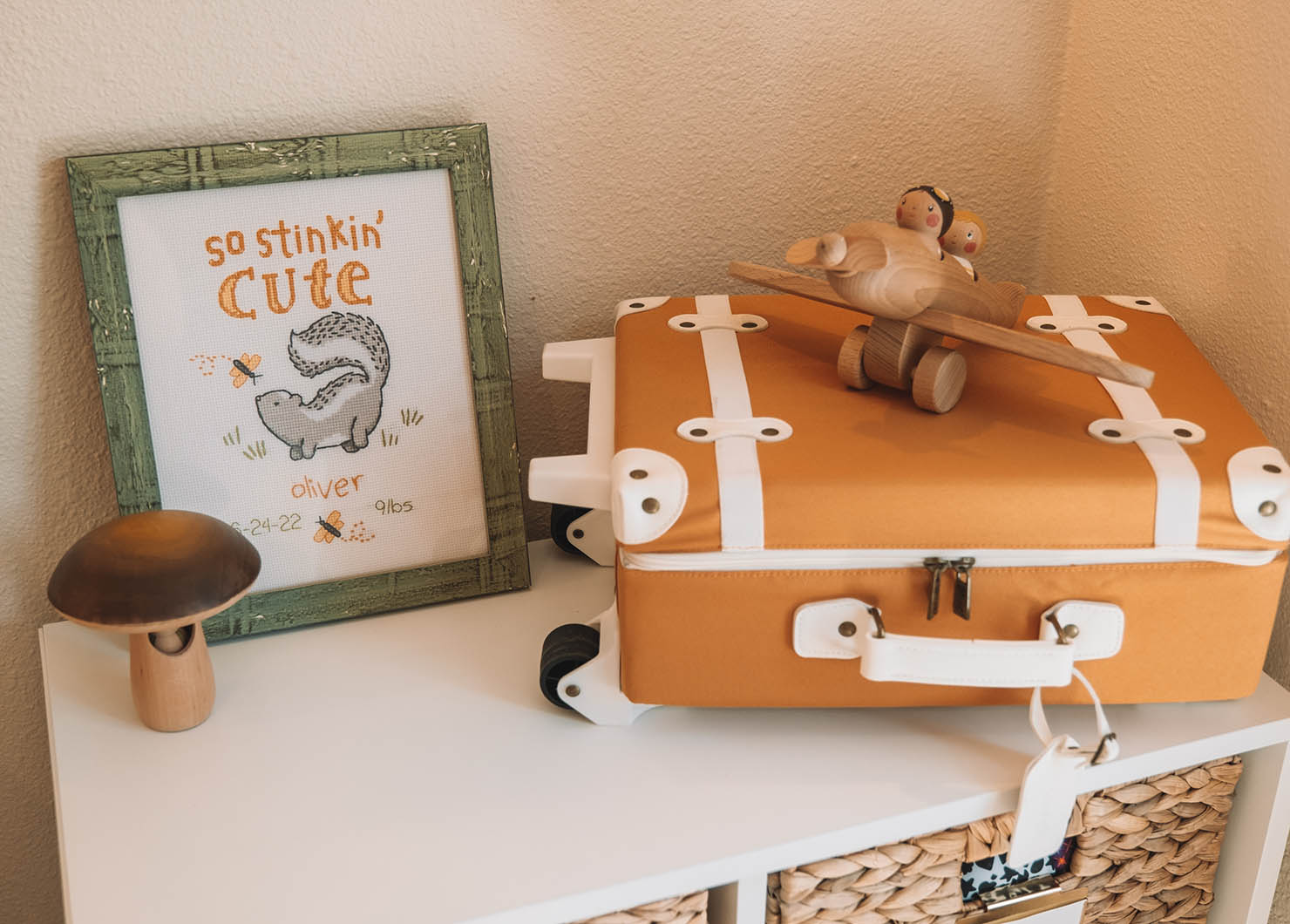 - Olli Ella “See ya” Suitcase (these are extremely hard to find now but ours is the Ochre color)