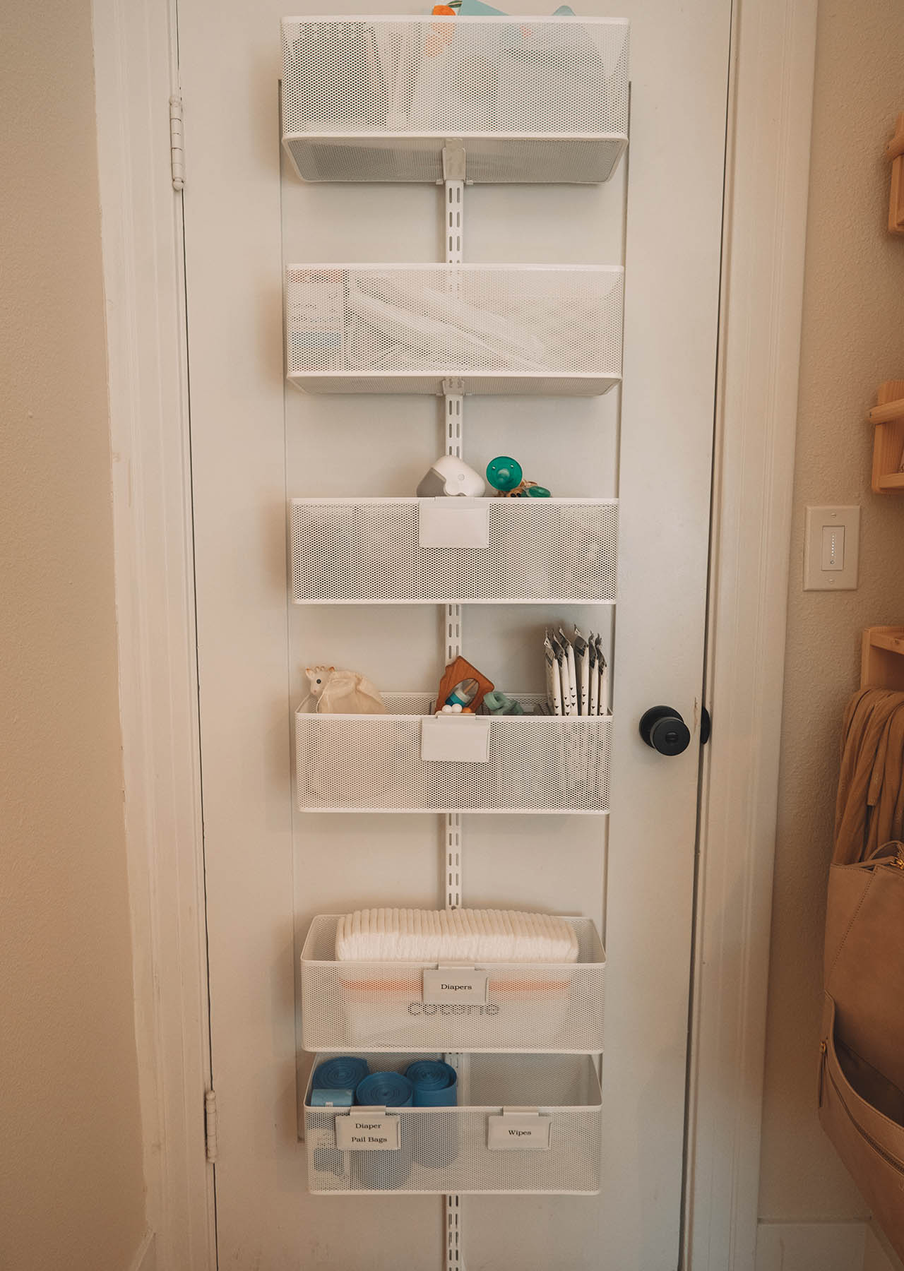 We use this in the nursery and our guest bathroom and it’s a HUGE space saver. Instead of buying the Container Store set, I bought the individual items so that I could customize the bin size.