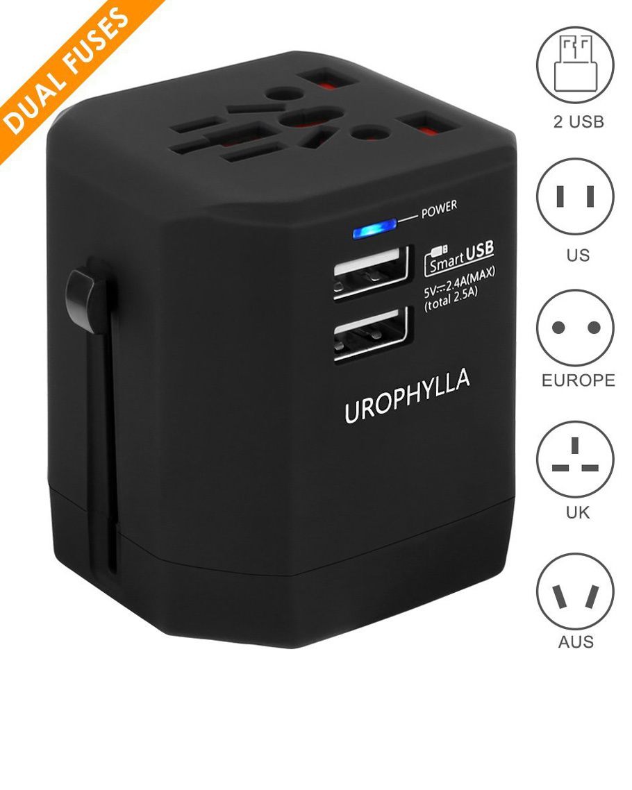- UNIVERSAL ADAPTER+USB CHARGER :4 types of plugs, cover more than 150 countries.No more bother to choose a special plug for your trip. the two USB travel adapters are a very handy feature for your travel .It can charge three device at once. Fits the polarized US plug where one prong is larger.
