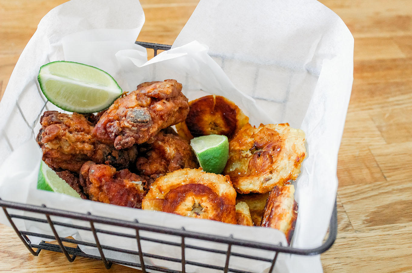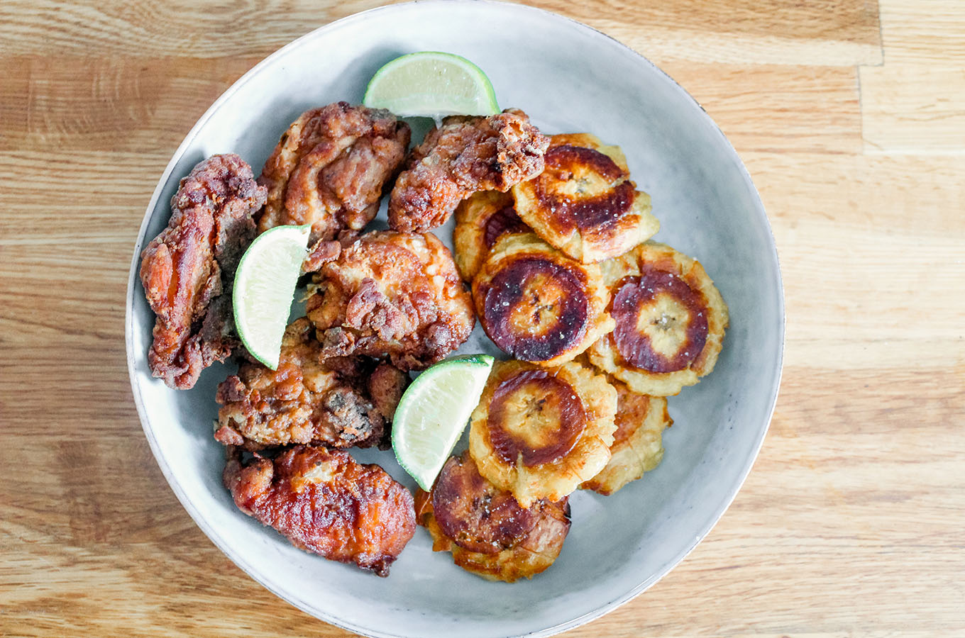 - Drizzle some lime juice over the chicken and serve with tostones.