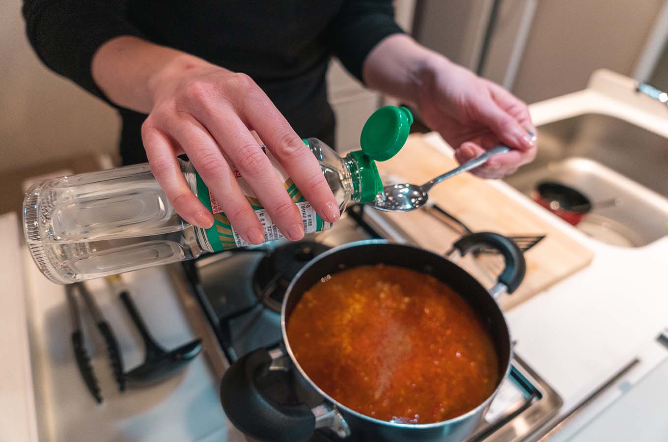 I simply skip the ground pork when making the base for the soup, exchange the chicken stock with a vegetable one and add lentils to make the soup more filling. Sometimes I add half a can of coconut milk so it’s creamier.