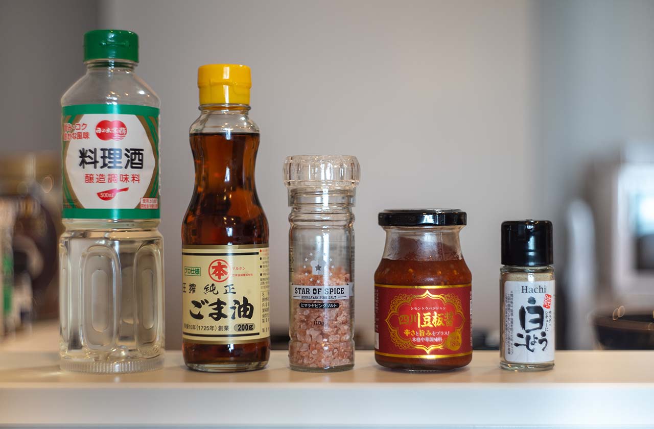 - To season: white pepper, salt, sugar, and 1 tbsp. of sake