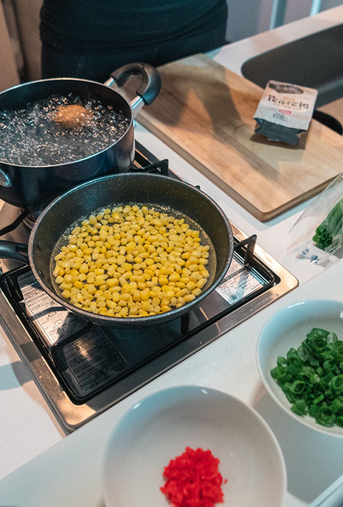 You can put on whatever you like or what you have available at home. Here are some examples of what I usually like to use. From this selection, I would highly recommend the boiled eggs, green onion, and corn kernels.