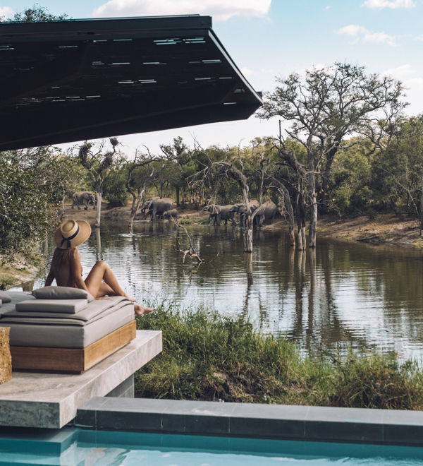 Each house is comprised of a main house with 4 private guest suites – the main house boasts 2 lounges (formal lounge and an entertainment lounge), dining area, outdoor boma, wine room, and heated swimming pool. With 4 suites, each house can accommodate up to 8 people. You book the entire house, so it’s ideal for groups and families or anyone looking for a completely private safari experience.