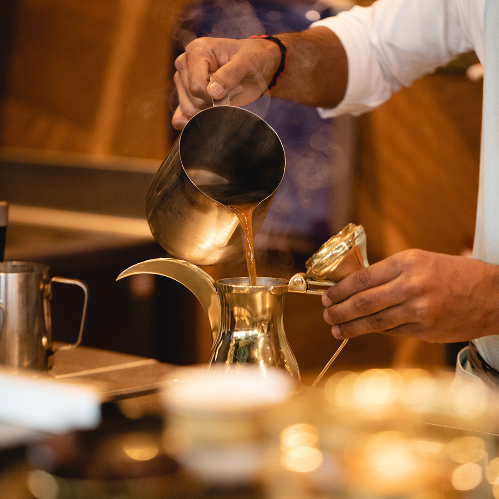 Arabic coffee can be distinguished between two types; Turkish and Saudi. In Jordanian tradition, coffee is served in small portions and the host/waiter will continue to serve more until the guest gestures he/she has had enough.