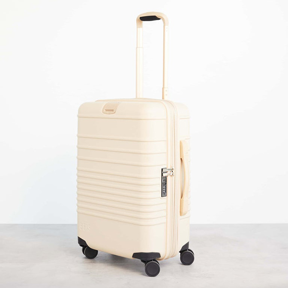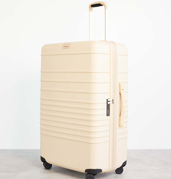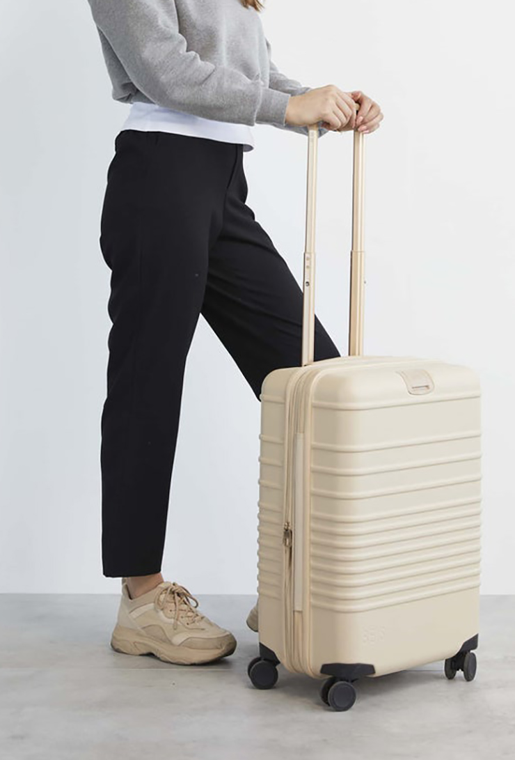 My current go-to carry-on bag is The Carry-On Roller in Beige by Béis.